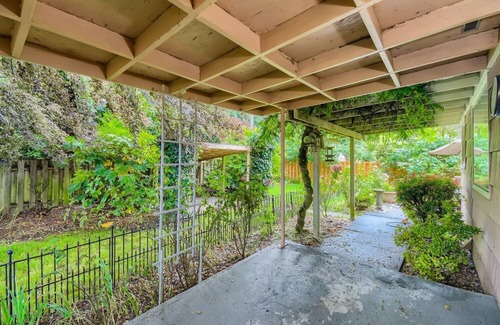 Experience the perfect blend of tranquility and convenience in this stunning 2,300 sq ft ranch-style house, nestled on a 1/3 acre flat land with mature landscape. Enjoy the scenic views of the garden and nature from the covered patio, perfect for relaxing and unwinding. This spacious home features four big bedrooms, each with extra space for luggage, and can accommodate up to 13 guests. The open floor plan living room and family room offer ample space for socializing, with a 52" smart TV and leather sofa. The fully equipped kitchen is stocked with essentials, including a coffee machine, dishwasher, microwave, fridge, and electric oven. The laundry room features a washer and dryer. The property also boasts a fenced backyard, outdoor furniture, and a biking path just outside the house. Located close to the airport, Columbia River, and Mt. Hood, this home is ideal for business travelers and families alike. Enjoy easy access to public transit, freeways, and nearby shops and estaurants.