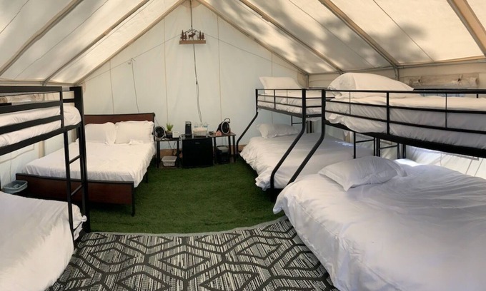 Beautiful glamping experience. All twin size beds come with a fitted sheet, one pillow and pillowcase. All queen size beds come with a fitted sheet, two pillows with pillowcases. Blankets available for $15.00 each bed.