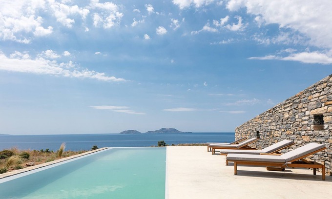 Set in a cliff top location with a bird’s eye view of St. Pavlos Bay and the surrounding rocky coast, Orizontes is the perfect sea-friendly, detox, self-catering home for families & loved ones with a difference. With home-from-home comforts, the Iconic Villa combines elegance, privacy and unique touches to ensure a stay less ordinary. The allure of this holiday home is impossible to ignore. Hideaway in style with every conceivable comfort at your fingertips, the iconic Villa offers extraordinary eco-friendly stunning sea-view settings. A haven of outstanding style, biophilic design and meticulous service that place you in the heart of every fascinating environment. With incredible tailored experiences across beach, nature and spectacular spaces to simply 'be'; unforgettable moments begin at Orizontes Villa.