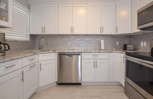 The kitchen is fully equipped with everything you need to prepare a home-cooked meal, from a quick breakfast before hitting the sand to a full family dinner.