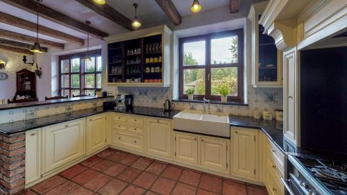 Osada Ulnowo - Holliday & Party House in Grunwald provides accommodations with a garden, barbecue facilities, and a shared lounge. This beachfront property offers access to a patio, free private parking, and free Wifi. The villa offers garden views, a children's playground, and a 24-hour front desk. The villa provides guests with a terrace, lake views, a seating area, satellite flat-screen TV, a fully equipped kitchen with a dishwasher and an oven, and a private bathroom with walk-in shower. A microwave, a toaster, and fridge are also offered, as well as a coffee machine and a kettle. At the villa complex, the units include bed linen and towels. Buffet and continental breakfast options with local specialities and cheese are available. Guests at Osada Ulnowo - Holliday & Party House will be able to enjoy activities in and around Grunwald, like hiking. Fishing and canoeing can be enjoyed nearby, while a bicycle rental service, a private beach area and water sports facilities, are also available on-site. Olsztyn Bus Station is 30 miles from the accommodation, while Olsztyn Stadium is 30 miles away. Olsztyn-Mazury Airport is 47 miles from the property, and the property offers a paid airport shuttle service.