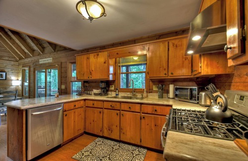 Oscar's Outpost is a great cabin with all the amenities you’ll require for your much-wanted weekend getaway! The open floor plan consists of a great room, complimented by a rustic rock fireplace with a new electric fireplace & a wall of windows that pulls nature in so you feel like you’re sitting in a tree house, a kitchen that overlooks the great room & has plenty of counter & cabinet space. The spacious dining nook has windows on each wall so you can dine & enjoy your picturesque view of the outdoors. The main level offers a king master suite, queen bedroom with bathroom across the hall and the open sleeping loft holds the cabin's third bed and half bath. Step out onto the screened in porch to enjoy the crisp mountain air or walk down to the firepit to toast marshmallows. Oscar's Outpost is a simple but comfortable retreat to enjoy with your loved ones and fur-babies!