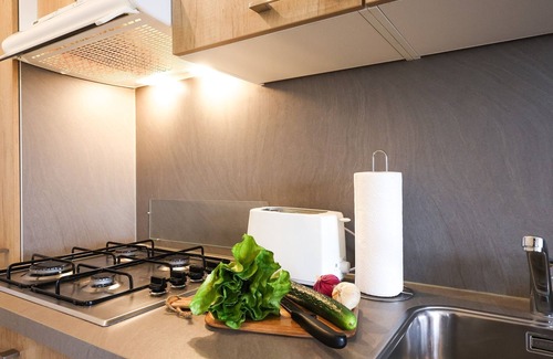 A living room and a BBQ grill are featured at this 2-bedroom, 1-bathroom rental. Connect to the free WiFi, or get cozy in front of the TV. Prepare a home-cooked meal in the kitchen, complete with a stovetop, a refrigerator, and a dishwasher, as well as a coffee maker, cookware, and a toaster. And because there's a washer and dryer, you can go a bit lighter on your packing. Other amenities include heating and a dining table.