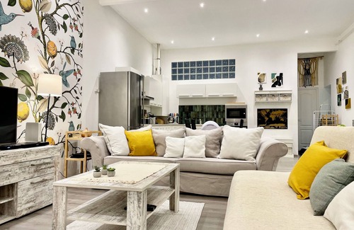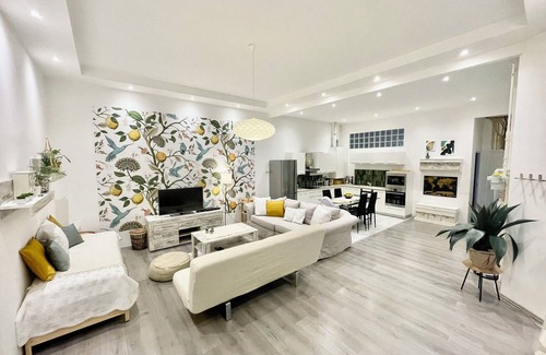 This brilliant apartment offers a terrific living room with 1 queen bed and 1 sofa bed, along with 1 queen bed, 2 twin beds, and 1 crib in the bedrooms. The large bathroom features a bathtub, shower bidet, and hair dryer for your convenience. Guests can also enjoy amenities like WiFi, AC, and a room with fitness accessories during their stay. The kitchen is exceptionally well equipped. Everything was made to here with love and passion for ourselves and our future guests.