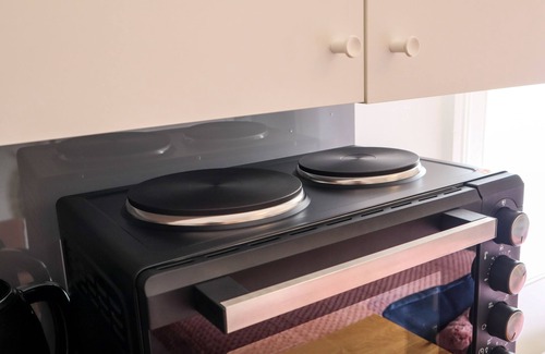 The kitchenette is supplied with all necessary equipment fridge, mini grill, hot plates, toaster, kettle and coffee maker and all utensils. pots pans plates cups glasses cutlery etc