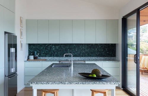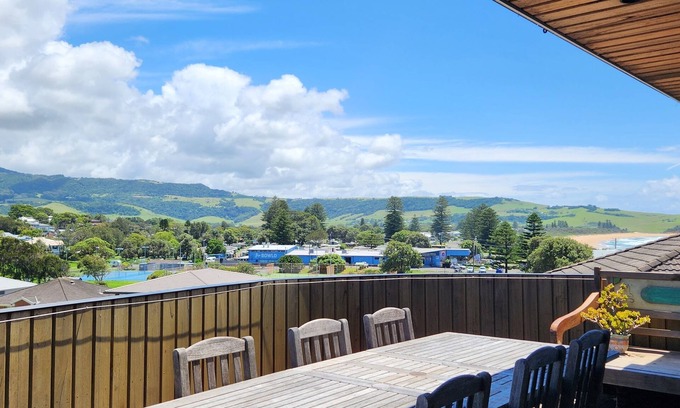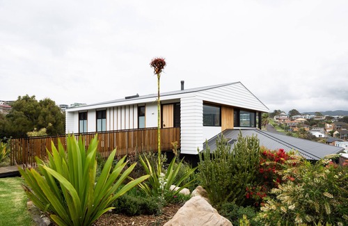 Escape to Ourie House - an architecturally designed, four bedroom house with mountain and ocean views.