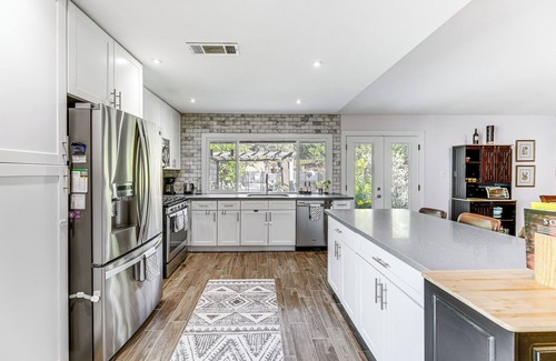 Surround yourself with the best of the city without sacrificing the comforts of home at this Austin vacation rental. This 3-bed, 2-bath home’s open floor plan, expansive outdoor entertainment area, and kid-friendly amenities ensure your group will find no shortage of space and convenience. Furry friends are welcome, too! Swim in the outdoor pool, grab some peaches from the fruit trees, or stargaze by the fire pit. When you want to explore, the metro area’s hotspots are just a short drive away.