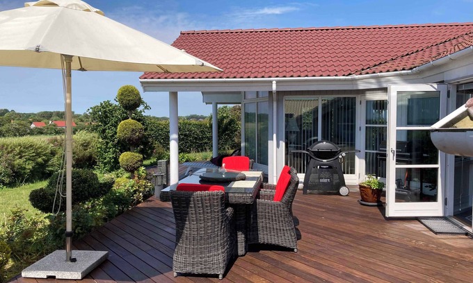 This amazingly located house in Karrebæksminde is first row on the plateau outlooking the ocean and beach. If you wish to be close to the water and be on the beach within three minutes. From the house and terrasse you will find a wonderful view over ocean from the harbor to the far north. It is perfect for a combination of water sport, relaxation and nature walks.