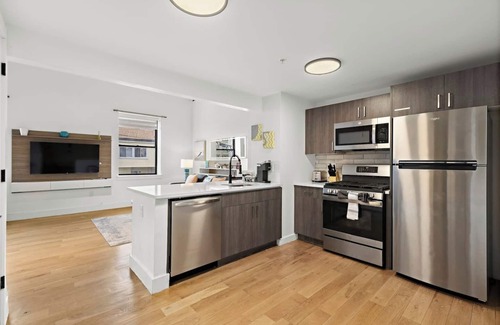 Welcome to this Classic 1 bedroom King bed Loft newly built apartment located in downtown East Orange. Guests will enjoy a supreme location close to a variety of eateries and public transportation including 10 minute walk to the train station from the apartment building. Guests will have everything from culinary needs to bedding/bath, suitable for monthly stays or a few nights. The space has all modern appliances including a washer and dryer providing all the necessities to be your home away from home!