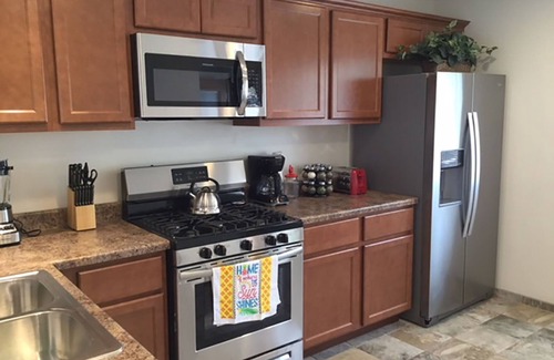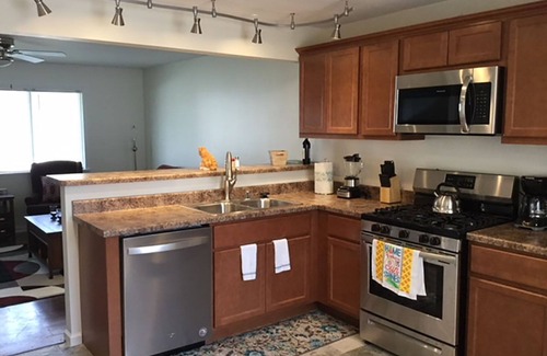 New modern appliances such as, refrigerator, stove, oven, microwave, dishwasher and coffee maker.