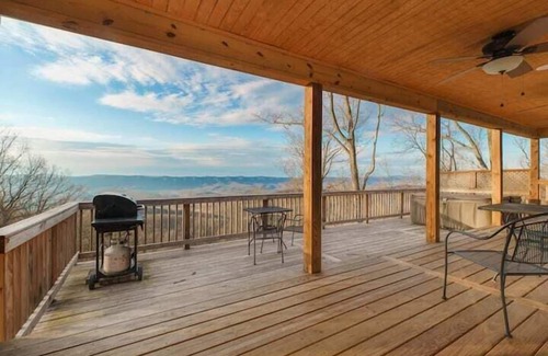 **BREATHTAKING** views of the Shenandoah Valley and River from 2,000 feet up on the side of the mountain! French doors in the master bedroom suite and in the living room open up to a 2-level deck, half covered & half uncovered.