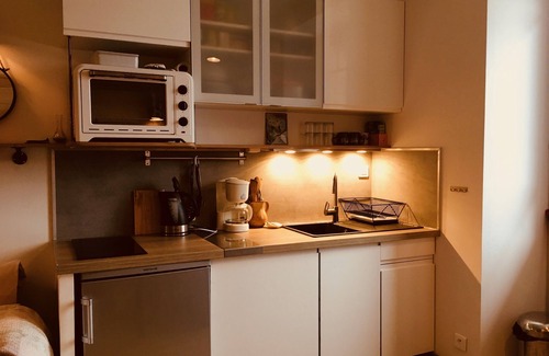 You will find, a kitchen equipped with dishwasher, hob (2 fires), refrigerator and numerous tidying up.
