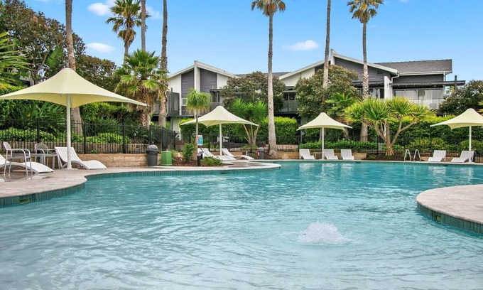 Located right on the first hole of the famous Magenta Shores Golf Course this 3 bedroom apartment boasts a fantastic outlook and location (just across the lane from the pools). Enjoy the newly refurbished lagoon pool with seasonal kiosk/bar or check out the rock pools for the little one. If you prefer the feeling of sand between your toes and the breeze in your hair then the beach is only a stone s throw away. Guests are also welcome to use fee for service facilities such as Vie Spa, Barretts Restaurant and Shallows Bar. If you are a member of the golf course (or have a Golflink number) you will also have access the championship 18 hole golf course*.