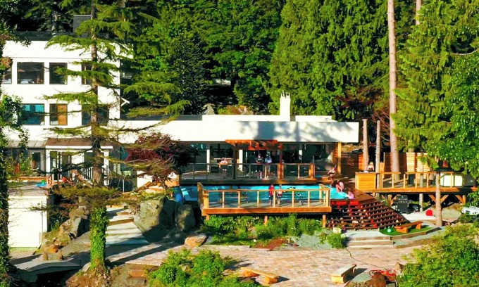 Escape to the Ozarks Lakeside Retreat, a 4,800 sq ft beachfront home in BC's Southern Coast Mountains. Spanning three floors plus a rooftop patio, it offers stunning Harrison Lake views. With three bedrooms, it accommodates up to 16 guests. Enjoy 160 feet of private beach, a boat dock, mini golf, an outdoor pool, and more. Rates: $1450 (Mon-Thurs) and $1750 (Fri-Sun). Book your luxury stay today!