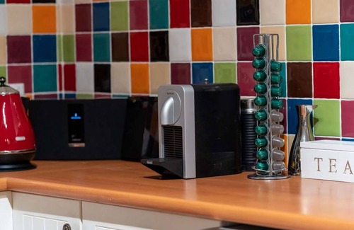 The kitchen has a Nespresso coffee machine with complimentary pods provided.