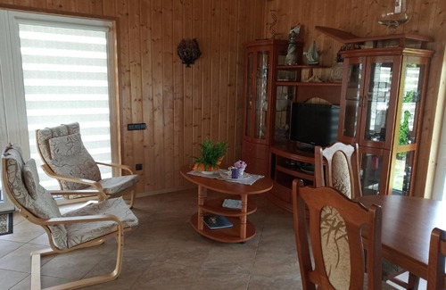This apartment offers a garden, barbecue facilities, as well as a shared lounge. There's a children's playground and guests can use free Wifi and free private parking. Offering a terrace and garden views, the spacious apartment includes 1 bedroom, a living room, flat-screen TV, an equipped kitchen, and 1 bathroom with a shower. The comfortable, air-conditioned accommodation also comes with soundproofing and a fireplace. The property has an outdoor dining area. A bicycle rental service is available at Pakeliui/On the way. Palanga Airport is 91 miles away.