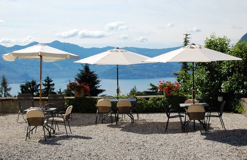 - Large garden and public solarium with umbrellas and tables, overlooking the lake;
