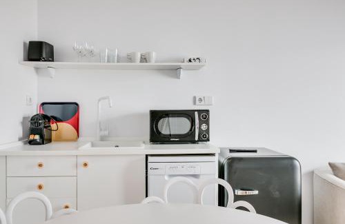 Food & DrinkTea/Coffee makerBathroomPrivate bathroom, Bathtub or shower, Shower, Toilet, Towels, Body soap, Toilet paper, Shampoo, Conditioner, Free toiletries, HairdryerMedia & TechnologyTV, Flat-screen TVGeneralHeating, Iron, Ironing facilities, Air conditioning, Trash cansKitchenKitchenette, Dining table, Cleaning products, Toaster, Microwave, Coffee machine, Kitchenware, Dishwasher, RefrigeratorOutdoorsBalconyLiving AreaSitting area, Dining area, SofaBedroomLinens, Wardrobe or closetViewCity view, Landmark view, Quiet street viewAccessibilityAccessible by elevator, Upper floors accessible by elevatorRoom AmenitiesClothes rack, Sofa bed, Socket near the bed |