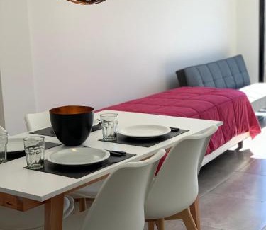 Palacios del Sur is a recently renovated apartment in San Carlos de Bariloche near Playa del Centro. This apartment provides free private parking, an elevator, and free Wifi. Featuring a private entrance, the apartment allows guests their privacy. The apartment provides guests with a balcony, mountain views, a seating area, a flat-screen TV, a fully equipped kitchen with an oven and a microwave, and a private bathroom with bidet and a hair dryer. A toaster, a fridge, and stovetop are also featured, as well as a coffee machine and a kettle. At the apartment complex, all units include bed linen and towels. Civic Center, Bariloche is a 12-minute walk from Palacios del Sur, while Serena Bay is 8.1 miles away. San Carlos De Bariloche Airport is 8.7 miles from the property.