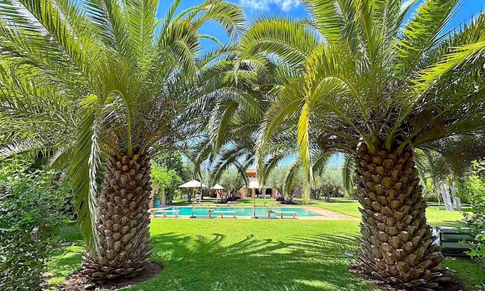 Located in a peaceful and secluded location, Palais Danka is a true haven of luxury and refinement. Surrounded by majestic palm trees, this sumptuous villa offers an elegant setting and all the amenities necessary for an unforgettable stay. It can accommodate up to 10 people in absolute comfort, with 5 spacious and modern bedrooms, each equipped with a king-size bed and a private bathroom, ensuring both privacy and well-being. The large living room, bright and sophisticated, invites you to relax in a subtly contemporary and oriental atmosphere. Outside, an additional living room and dining areas offer a splendid view on the heated pool as a supplement, surrounded by a lush garden, perfect for moments of relaxation. Two cooks are available and will prepare meals on request. Palais Danka combines modernity, elegance and serenity, thus offering an exceptional stay.