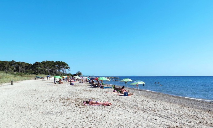"Palazzeta IV", 3-room apartment 55 m2, on the upper floor. Practical furnishings: living/dining room with dining table and satellite TV. 1 double bedroom with 1 double bed (160 cm). 1 room with (80 cm), 1 x 2 bunk beds, 1 double bed. Open kitchen (oven, 4 gas rings, microwave). Bath/bidet/WC. No heating option. Small balcony. Balcony furniture. Facilities: washing machine, baby cot for up to 2 year olds (extra).
