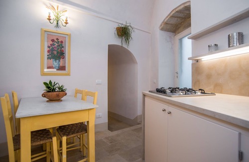 Ground floor apartment built in very suggestive rooms, with arches, vaults, ancient portals, careful restoration and elegant furnishings. The independent entrance leads into a beautiful well-equipped dining kitchen, you pass to a living room where there is a single bed and from here you go up to the mezzanine double bedroom. Bathroom with large shower space carved into the rock.