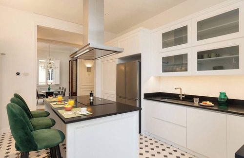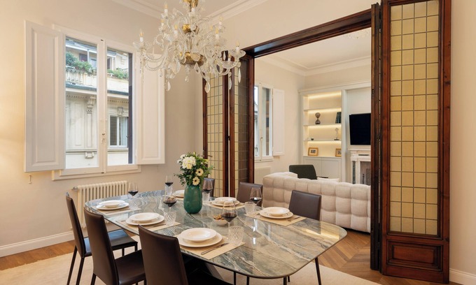 Immerse yourself in Florentine luxury with our three-bedroom apartment in a historic building designed by the illustrious Giuseppe Poggi. Located in one of the most elite neighbourhoods of the city center, the space combines timeless elegance with modern comforts. Features include a Carrara marble fireplace, an original 1600s mirror, and a 1700s Murano chandelier. The balcony offers sweeping views of Piazza della Libertà and the Fiesole hills—perfect for soaking in the Florentine essence. Access to the apartment is characterized by an elegant wooden elevator with a leather bench, adding a touch of class to your stay.