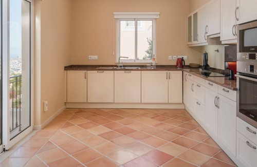 Fully equipped kitchen. 4-ring electric induction cooker, built-in electric oven, microwave, fridge/freezer, dishwasher, expresso coffee machine, kettle, toaster, handheld liquidizer, washing machine.