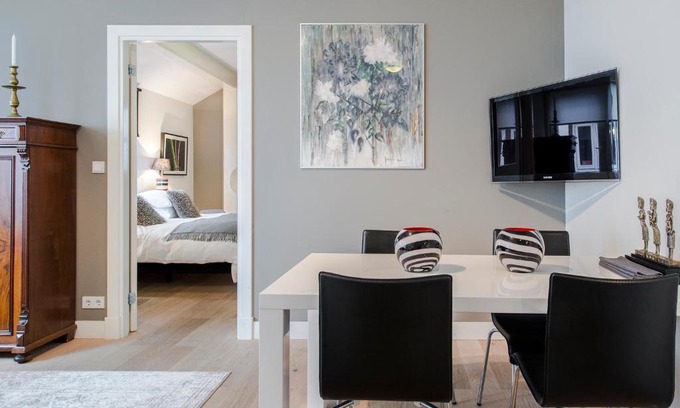 Located in the historic Jordaan area, Palm Apartment Amsterdam offers an elegantly designed studio with a view of the area. The Anne Frank house and Westerkerk are a 10-minute walk. Free WiFi is available. The bright and spacious studio features a soft toned décor, large windows and wooden floors. The living area is equipped with design furniture and a flat-screen TV. The dark colored bathroom is fitted with a shower, a hairdryer and free toiletries are provided. A washing machine and clothes dryer are also available. Meals can be prepared in the modern kitchen. It is equipped with an oven and microwave. There are coffee/tea making facilities. There is a supermarket 1640 feet from Palm Apartment Amsterdam. Tram stop the Nieuwe Willemsstraat is 558 feet from the apartment and links to all major tourist sights. Amsterdam Central Station is a 15-minute walk. The Dam Square is 1.2 mi away.