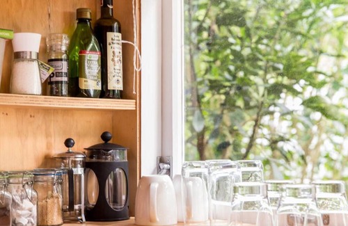 Driftwood is a compact but beautiful bungalow which looks out into the canopy of native bush. It has a generous deck for sitting outside, and gets all-day sunshine both inside and out.