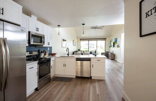 The home is equipped with a Smarthome keyless entry making contactless checkin and checkout seamless for guests. A secured 2 car garage is available for guests and their vehicles. The residence comes equipped with 2 king size beds and two televisions. During Summer months, Monterey Country Club does routine maintenance including spa and pool repair, concrete and asphalt repair and at times, painting of residences. All of these are out of the control of all owners here at Monterey Country Club. Should you book during one of these unforeseen times, no refund will be given.
