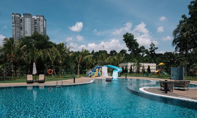 2 outdoor swimming pools are on site along with a children's pool. Other recreational amenities include a waterslide and a fitness center.