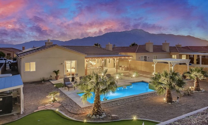 Palm Luxury Villa w/hot tub, private pool, putting green, remote work | Villa in Desert Hot Springs