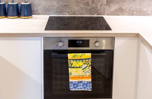- Fully equipped kitchen with induction hob, oven, fridge, freezer, kettle, toaster, microwave, dishwasher, and coffee machine.