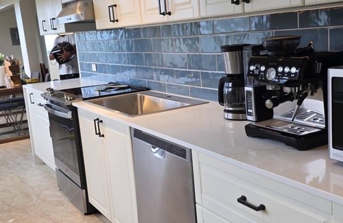 Only 25-30 minute drive from San Juan Airport. Palm Villa is the ultimate vacation paradise home. When you enter the gates of the villa, you are immediately immersed in the most tropical and vibrant display of Caribbean vibes. A hand painted flamingo mural adorns the guest house, a cool blue pool beckons you to take a dip, and the palms lining the property sway in the breeze. The villa is equipped with all the essentials from towels and linens, to shampoo and soaps, and all of the kitchen equipment needed to whip up a gourmet meal. For play time, there are board games, cornhole set, paddle boards, skim boards, putting green and plenty of entertaining spaces to enjoy. At night, the entire property lights up with a warm inviting glow. String lights hang from the pergolas provide your own personal shining stars and the bubble glass sconce lights shimmer and twinkle. We've created the perfect place to Rejuvenate, Relax, Indulge, Laugh, Dance, or Let Go.