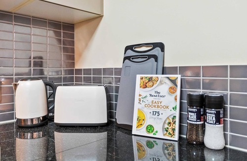 You’ll sleep soundly in the plush king-size bed with blackout curtains and soft linen. The sofa bed in the living room comfortably sleeps two more guests. Travelling with little ones? A travel cot and highchair are available on request.