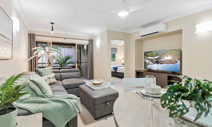 If you're dreaming of a relaxing, newly furnished space to call home during your time in Cairns, you’ve just found it. Palmview Heights is a stylish, fully air-conditioned apartment perched on the top floor of a resort-style complex, offering peaceful palm views, fresh interiors, and all the comforts you need to unwind.