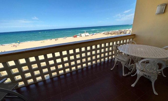 Pals primera Linea de Mar is located in Pals, just 12 miles from Medes Islands Marine Reserve and 28 miles from Girona Train Station. This beachfront property offers access to a terrace and free private parking. Dalí Museum is 31 miles away and Golf Playa de Pals is 1.2 miles from the apartment. With free Wifi, this 2-bedroom apartment features a cable flat-screen TV, a washing machine, and a fully equipped kitchen with a dishwasher and oven. Guests can enjoy a meal on an outdoor dining area while overlooking the sea views. There's also a seating area and a fireplace. Popular points of interest near the apartment include Platja del Racó, Pals Beach, and Playa de L'illa Roja. Girona-Costa Brava Airport is 37 miles from the property.