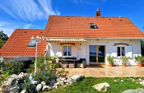 Offering a garden, Panoráma vendégház offers accommodations in Pécsely. This property offers access to a balcony, free private parking, and free Wifi. The accommodation features a shared kitchen and full-day security for guests. Featuring a terrace and sea views, the spacious apartment includes 2 bedrooms, a living room, flat-screen TV, an equipped kitchen, and 1 bathroom with a hot tub and a bath. Guests can take in the views of the mountain from the patio, which also has outdoor furniture. There's also a seating area and a fireplace. For those times when you'd rather not eat out, you can cook on the barbecue. Guests can also warm up near the outdoor fireplace after a day of cycling. Tihany Abbey is 7.4 miles from the apartment, while Annagora Aquapark is 8 miles from the property. Hévíz–Balaton Airport is 45 miles away.