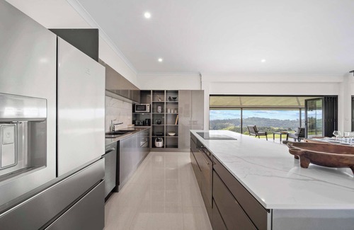 Perched on the side of a mountain in Bald Knob, Panorama Farm offers breathtaking panoramic views of the stunning coastline and hinterland of the Sunshine Coast, making you feel like you're on top of the world. There is so much to see and do in the Sunshine Coast Hinterland, you can explore charming art galleries, wineries, boutique shops, and cosy cafes. Take a trip to Flame Hill Vineyard (20-minute drive away), or stroll along the main street of Montville. This area is known for its scenic drives, hikes, stunning lookouts, waterfalls and delicious local produce. The home is a 20-minute drive to the Kondalilla National Park where you will find picturesque hiking trails, lush rainforests and a swimming hole with a waterfall to cool off in the warmer months.