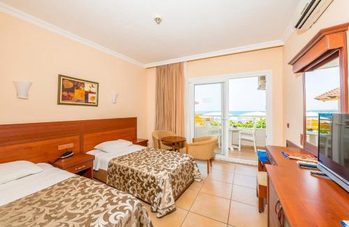 Panorama Hotel - All Inclusive features a private seafront location in Alanya. This 4-star hotel features a private beach area with free parasol & sun-lounger and a rooftop terrace that overlooks the Mediterranean Sea. It has a large freshwater pool, a fitness center and a tennis court. Rooms at the Panorama Hotel include balconies with pool or garden views. They come equipped with air conditioning and a flat-screen TV with satellite channels. The private bathrooms have a hairdryer. The hotel’s restaurant serves buffet dinners with fresh fruit and pastries. There is a kiosk that offers Turkish flat bread and an on-site market. At the hotel’s bar guests can enjoy cocktails and panoramic sea views. Panorama Hotel is 1312 feet from Alanya’s historical center. Antalya Airport is 78 mi away. The hotel offers 24-hour front desk service and free on-site private parking. Gazipasa Airport is 26 mi away.