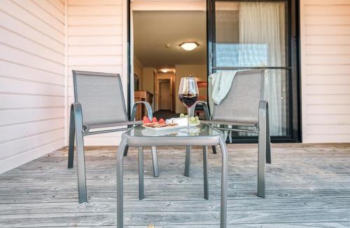 Food & DrinkWine/Champagne, Tea/Coffee maker, Chocolate/CookiesBathroomBathtub or shower, Body soap, Private bathroom, Shower, Toilet paper, Spa tub, Conditioner, Free toiletries, Shampoo, Hairdryer, Walk-in shower, Shower cap, Towels/Sheets (extra fee), Toilet, Towels, BathtubGeneralTrash cans, Key access, Safe, Carpeted, Air conditioning, Fan, Iron, Ironing facilities, Heating, Smoke AlarmMedia & TechnologyPay-per-view channels, Flat-screen TV, Satellite channels, Streaming service (like Netflix), TVActivitiesHot tubOutdoorsOutdoor furniture, Patio, Outdoor dining area, Terrace, BalconyKitchenElectric kettle, Wine glasses, RefrigeratorLiving AreaDesk, Sitting areaViewView, Sea view, Lake viewBedroomLinens, Wardrobe or closetAccessibilityEntire unit located on ground floor, Entire unit wheelchair accessible, Upper floors accessible by stairs onlyRoom AmenitiesClothes rack, Socket near the bed |