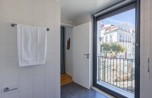 This spacious 4-bedroom duplex apartment hosts a wide terrace and a breathtaking view of the historic side of Lisbon. It is located in front of the Martim Moniz Square and is also a quick walk away from downtown Baixa!