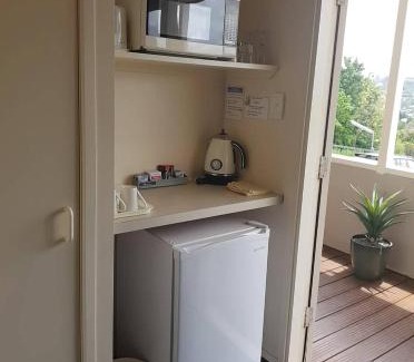 Food & DrinkTea/Coffee makerBathroomShower, Toilet, Private Bathroom, Towels, Toilet paper, Shampoo, Conditioner, Body soapMedia & TechnologyTV, Telephone, Flat-screen TVKitchenRefrigerator, Microwave, Electric kettle, Toaster, Wine glassesLiving AreaDeskGeneralFan, Heating, Carpeted, Electric blankets, Key accessViewViewBedroomLinensAccessibilityEntire unit located on ground floorBuilding CharacteristicsSemi-detachedRoom AmenitiesSocket near the bed |