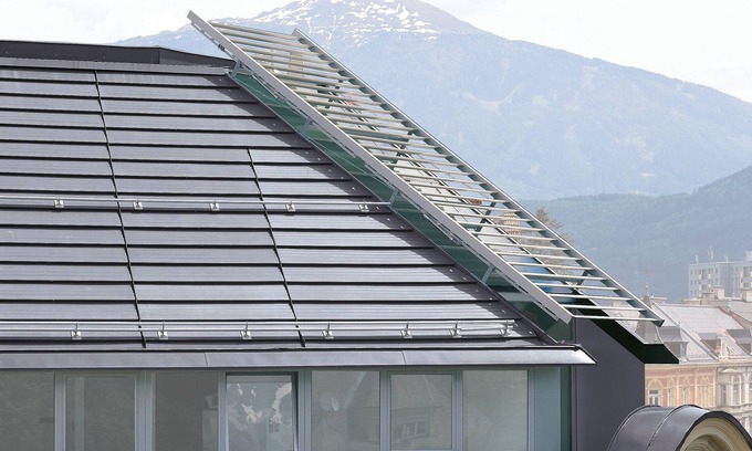 Two-storey 160 m2 architect penthouse in Saggen, centrally located. The greenest and quietest neighborhood in Innsbruck. About 10 minutes walk to the city center through the courtyard garden. The "living-dining area" (63m2) is directly connected to a 4.5m2 west-facing terrace, sunset and panoramic views over Innsbruck and the Inn Valley to the west of the surrounding mountains. A breathtaking view of the imposing "Nordkette"