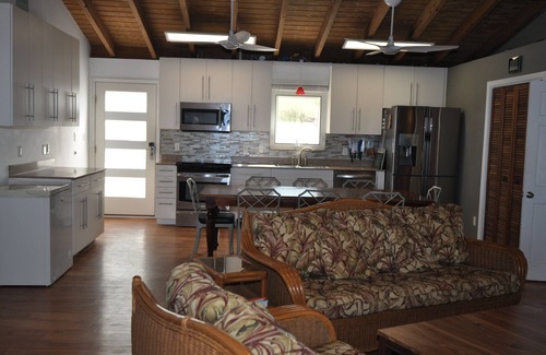 We love to cook so you will find our kitchen is loaded with tools and amenities to satisfy most every chef. High quality knives, Moccamaster by Technivorm coffemaker, a burr type coffee grinder, Keurig coffee maker, food processor, mix master, slow cooker, plenty of dinnerware, utensils and much more. Extra Large stainless steel refrigerator (French doors with water and ice dispenser on the front opens to spacious refrigeration and well lighted, a flex space designed to keep your beverages at just the right temperature) , and chest freezer. Gas grill on the deck where you will be grilling while looking out over the Caribbean Sea. Large dining room table inside as well as outside that can seat comfortably 8-10 people easily. All water is potable by flowing through a state of the art multiple filtering and Sanitron Ultra-violet system.