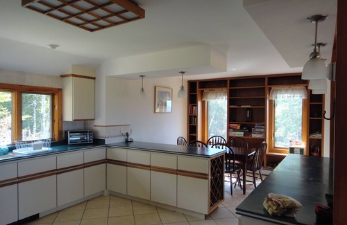 If cooking is your favorite way to relax, this is your dream kitchen: well-equipped, with plenty of counter space, and open to the living room so you can chat while you cook. Roast a turkey with all the trimmings or whip up a batch of waffles for breakfast. Or just put the kettle on for tea and pop something in the microwave. It’s all easy here.