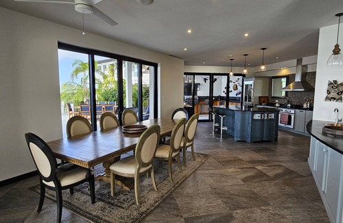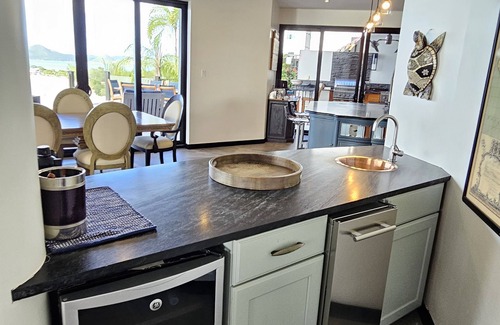 The large and fully equipped kitchen is a true chef's dream, featuring a 5-burner induction stove, dishwasher and a bar complete with glasses and sink. Ocean 9 has a fabulous outdoor dining area for 8 and outdoor kitchen with BBQ - perfect for a casual lunch or dinner al fresco, while watching the Antiguan sunset.