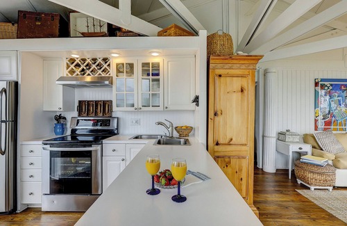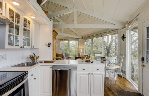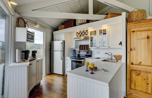 The fully equipped kitchen is complete with table and four chairs. Stainless steel appliances for your cooking pleasure. This home also includes a coffee bar set up in the kitchen overlooking the water. A Nespresso machine and a drip ground coffee maker as well as a k - cup coffee maker for your enjoyment. The spacious open living room offers a sectional sofa and tv with many spots to relax and read. There is a half bath off the living room. The cozy bedroom has a queen size bed, smart tv, and master bath with shower. There is a separate door to an additional powder room. A washer and dryer is located on the lower level for your use. Every room has floor to ceiling windows with amazing views.