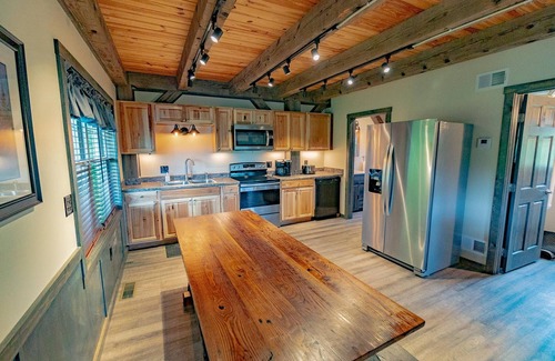 This newly finished timber framed cabin has the clean modern look you want, with the perfect location for any nature lover, or outdoor adventurer. Take in the majesty of your undisrupted panoramic views of Sugarloaf Mountains from your private front porch, or grandiose windows inside the cabin. Nature lover's can take in the view, enjoy the proximity to Ohiopyle State Park, and end every evening soaking in the hot tub overlooking the mountains of the Laurel Highlands. If you are looking to get away to the great outdoors, and want the grit and exploration of the mountains without sacrificing the comforts of home, this brand new two bedroom, one bath timber frame will not disappoint. One of a kind, with brand new finishings, washer and dryer, hot tub, and able to sleep 6 guests, it is the perfect relaxing mountain getaway for couples, friends, and families. We hope you decide to book a stay at Panoramic Point Cabin, you won't regret it! Great for remote working with High Speed Wireless Internet and Smart TV's.
